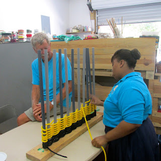 Here Don, Old Sam, Nova Scotia is helping a student make a mat.